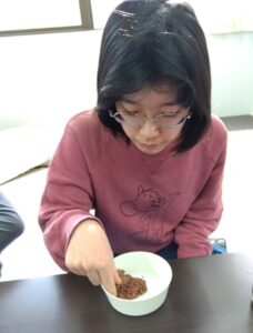 子どもたちは、チョコレートやシリアルを砕き、