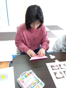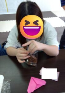 メッセージカードを書いたり、折り紙でハートや