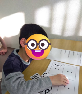 本日は個別療育の時間に、プリント課題と現物課題に取り組みました。
