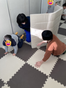 マットを立てて鬼ごっこをしたり、