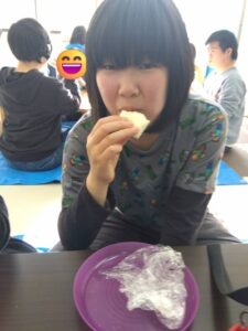 おやつでは、午前作ったバナナロールを美味しく