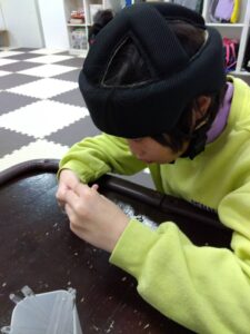 小さな部品をつまむ、差し込む、ねじるといったことで指先の訓練となっています。