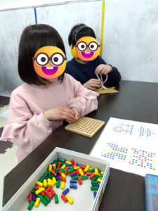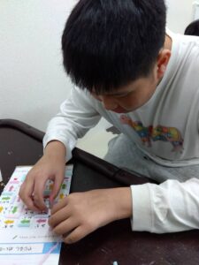 小さな部品をつまむ、差し込む、ねじるといったことで指先の訓練となっています。