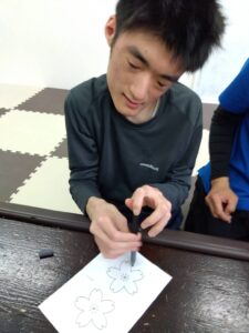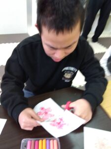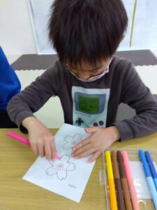午前中は、桜の塗り絵に取り組みました🎨