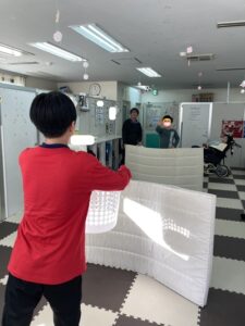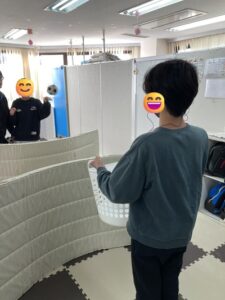 → マット越しに投げることで、「どのくらいの強さで投げたら届くか」「どの方向に投げればよいか」を考える必要があり、自然と距離感や空間の捉え方が身についていきます。