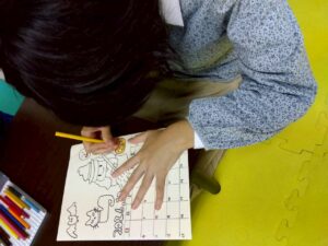 丁寧にカレンダーを塗り進めていく子や、どんどん新しいぬり絵に取り掛かる子もいました👏