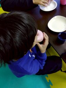 本日は【ミスタードーナツを食べよう】ということで、おやつの時間にそれぞれが選んだドーナツを食べました🍩