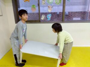 お昼ごはん、おやつ時のテーブルの準備や片付けをお友達と協力して取り組んでくれました✨