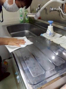 結果はみんな1敗ずつして、仲良くドアノブ消毒、テーブル拭き、流しの掃除をしていました(笑)
