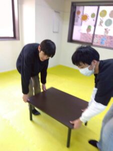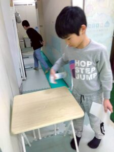 お昼ごはん、おやつ時のテーブルの準備や片付けをお友達と協力して取り組んでくれました✨