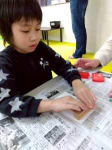 年賀状作りが終わったお友達は、獅子舞制作の手形を取ったり、自由にスタンプを押したりしました✨