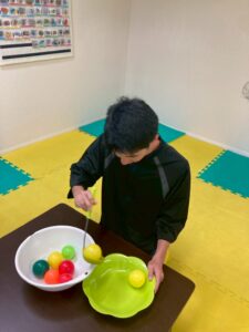 今日は、手先の器用さや力加減の調整をねらいとした活動として、