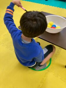 お玉を使ってカラーボールを運ぶ“お玉ボールすくい” を行いました。