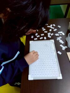 視線を左右に動かす課題や、位置関係を確認する活動を通して、空間認知や注意力の向上を目指しています。