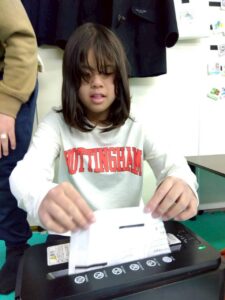 スタッフにプリントを渡して課題に取り組む活動では、指示を聞きながら落ち着いて取り組む姿が見られました。