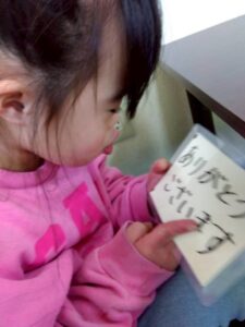 やり取りの中で「お願いします」「できました」といった言葉の練習にもつながっています。