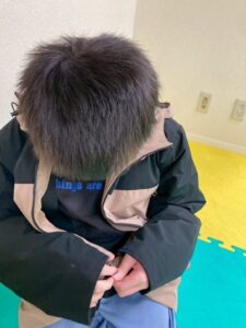 上着のファスナーを自分で「差し込む・引き上げる」練習を行いました。