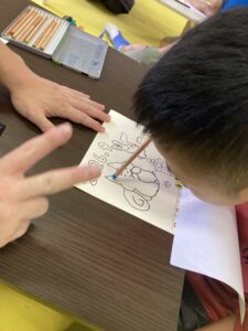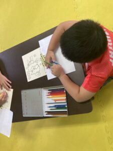好きな色鉛筆を選び、思い思いに色を塗っていきます。