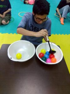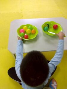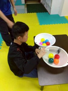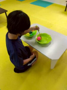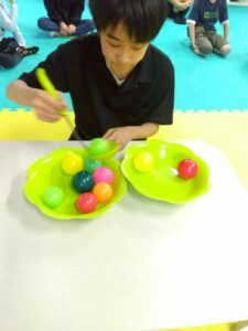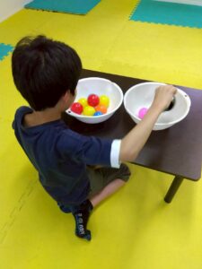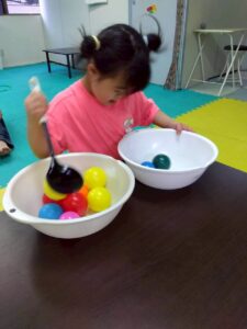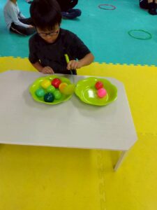 カラーボールを使って、楽しみながら手先の操作や集中力を養う活動です。