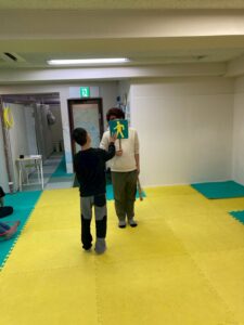 交通安全の意識を生活習慣として根付かせ、安全な歩行姿勢(止まる、確認する)を日常生活動作にする狙いや、信号の色(赤・青)の意味を理解し、正しい判断(渡る・止まる)を学ぶ練習になります(*^^*)