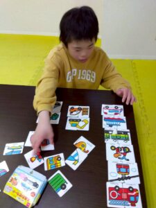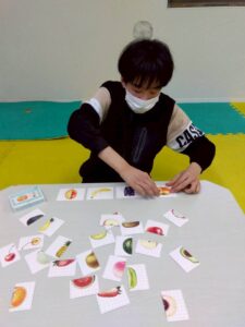 果物の断面の写真や乗り物のイラストカードをペアにしていきます🍓