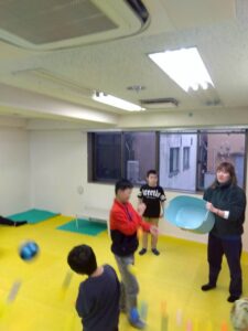 身長や年齢の違うお友達とペアになりましたが、協力して上手にボールを運ぶことができました🙌