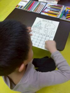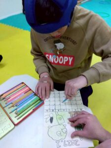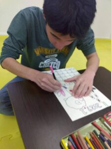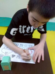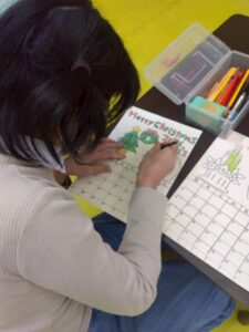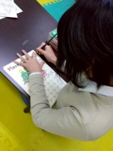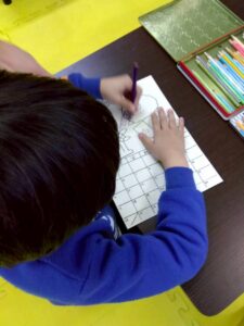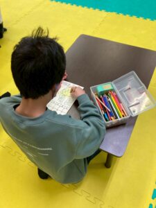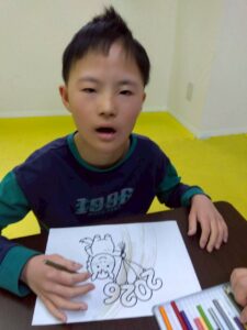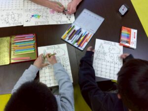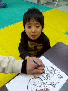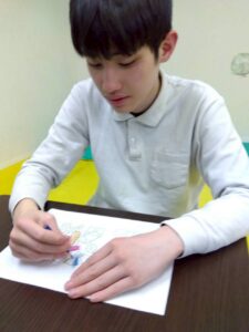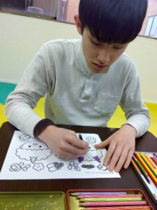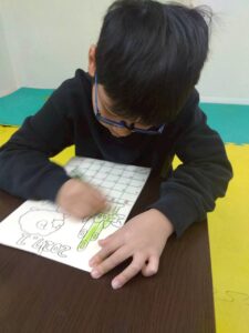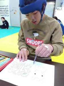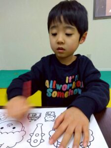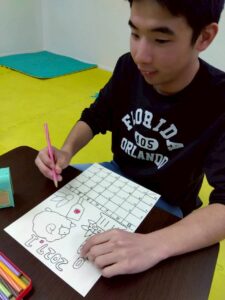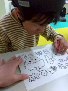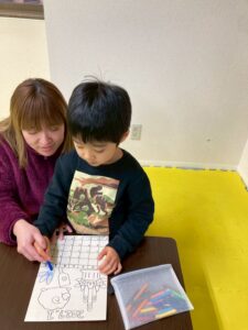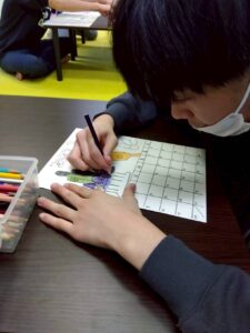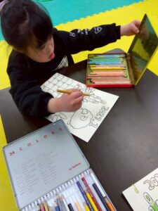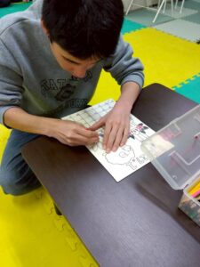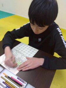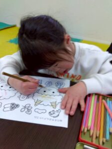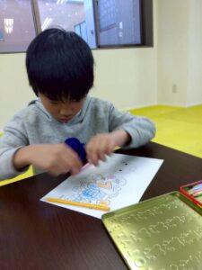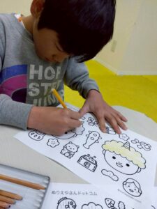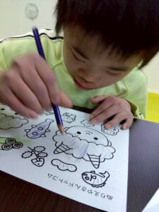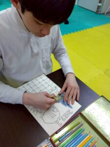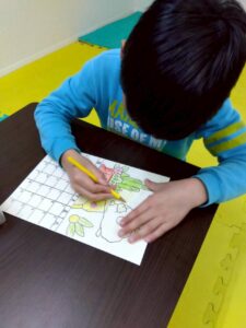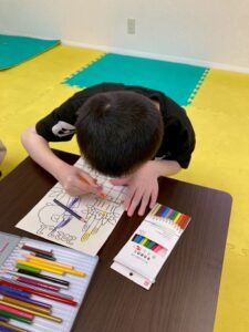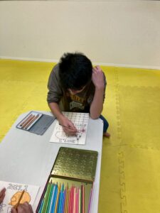 この日は、数字の確認をしながら色塗りや線なぞりに取り組みました。