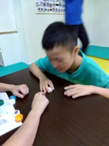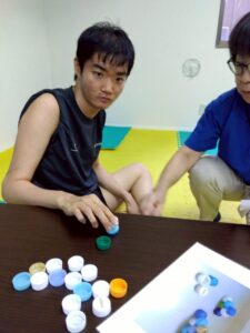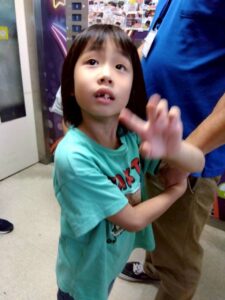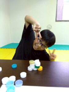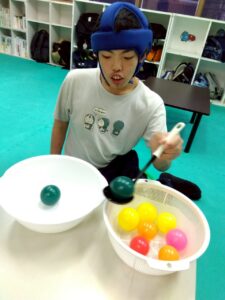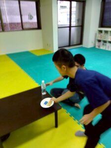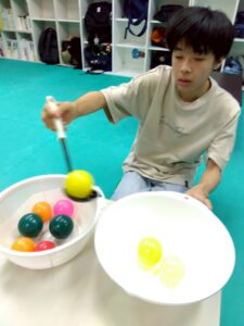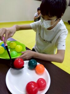難易度を上げて利き手ではない手を使って挑戦するお友達もいました!