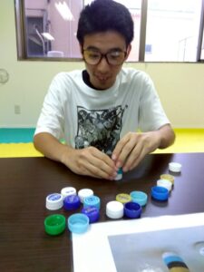 キャップの形は物によって異なり安定しにくいので、工夫して積み上げましょう!