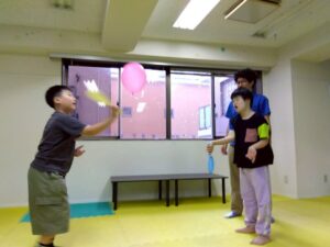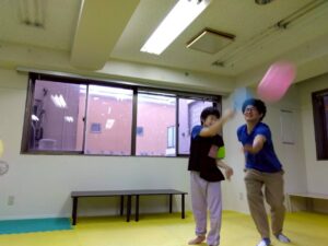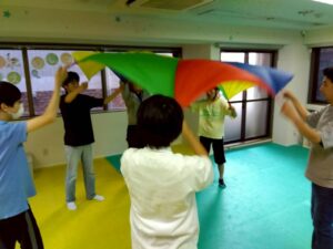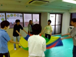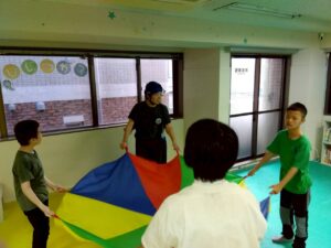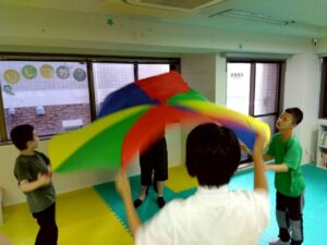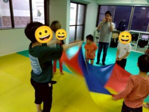 お兄さんお姉さんがお手伝いしてくれたりと、みんなで協力しながらパラバルーンができました😊