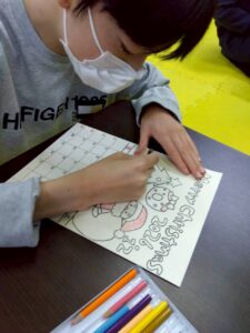 クリスマスらしいイラストのぬり絵に取り組み、一足早くクリスマスを感じられました🎄