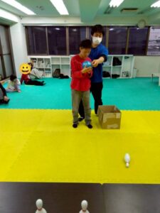 実際に投げる場面では、職員と一緒にフォームを確認しながら行う児童や、自分でしっかり狙いを定めて投げる児童の姿も見られました!