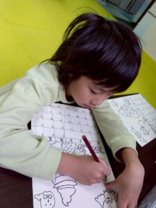 自由時間では、大好きなおもちゃやイラストカードを見てのんびり過ごしました!