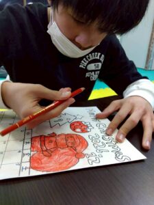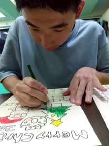 早い子はすでに完成しているので、クリスマスにちなんだイラストのぬり絵に取り組んでいます🎄