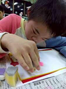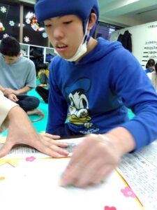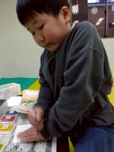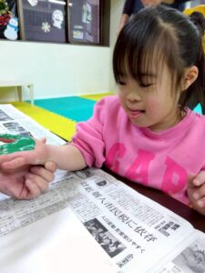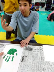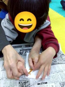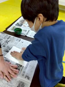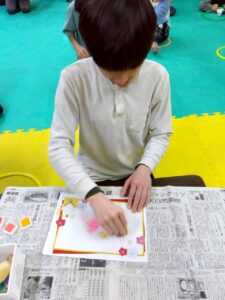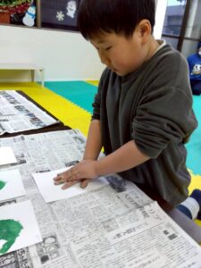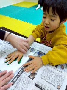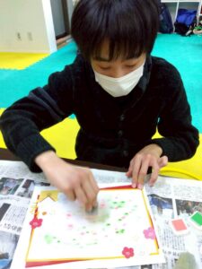 年賀状作りが終わったお友達は、獅子舞制作の手形を取ったり、自由にスタンプを押したりしました✨