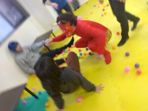 豆に見立てたカラーボールで鬼を撃退チャレンジしました!