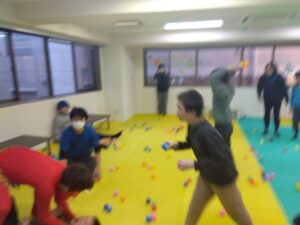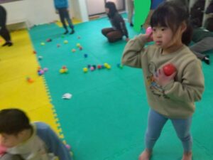 豆に見立てたカラーボールで鬼を撃退チャレンジしました!
