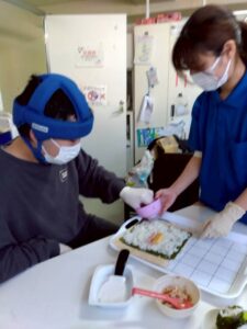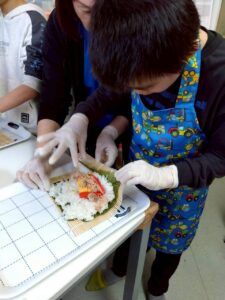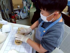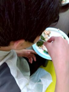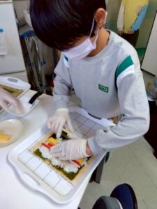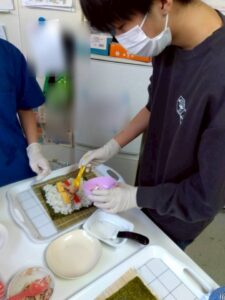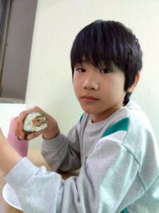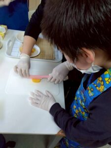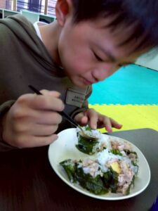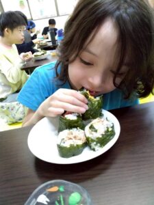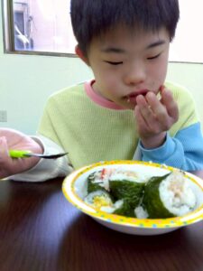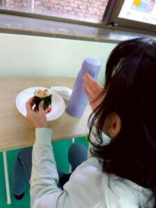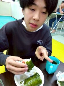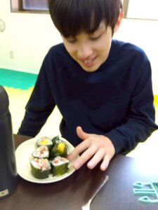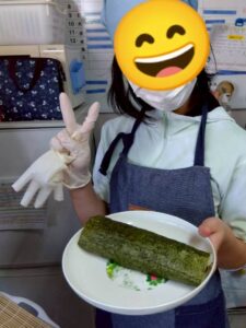 「切らないで食べたい!」と希望するお友達もいたので、大きいまま恵方巻を食べる子もいました😊