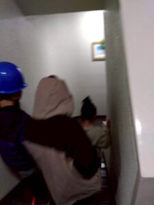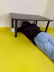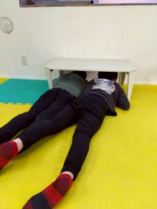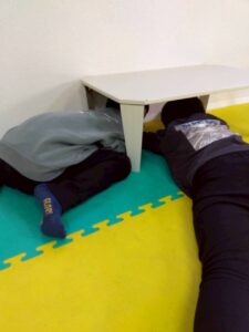 机の下に入れない子は、スタッフがクッションで頭を守ってくれました(*^^*)