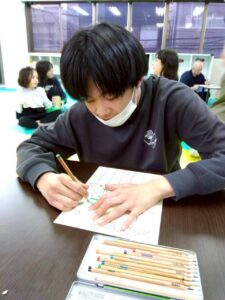 微細運動でもある塗り絵をみんな集中して取り組めました(^o^)