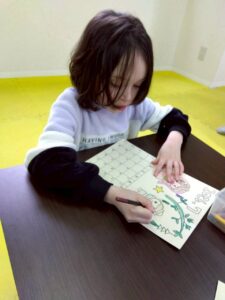 色鉛筆だけではなく、ペンやスタンプを使う子もいました😊