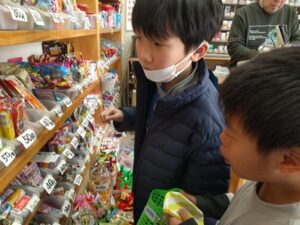 おやつを自分で選ぶ体験に向けて、矢向駅の近くにある「鈴木屋」で税抜き100円までのおやつ選びに取り組みました。