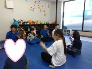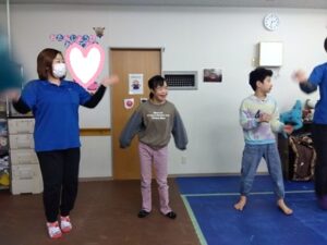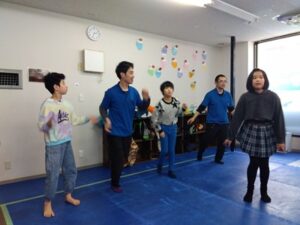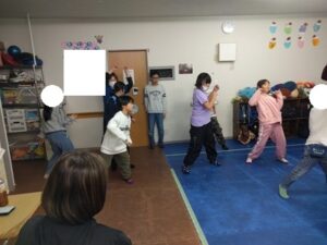 休憩を挟んだ後は、まったり輪になって手を使った振付ダンス😊
