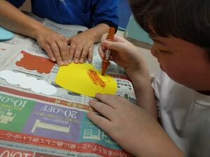 今日は季節を感じながら手先を使うことに向けて、色画用紙を使った制作活動に取り組みました。