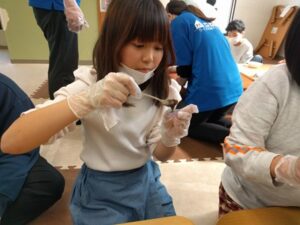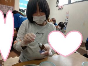 別のテーブルでは、少しずつすくってカップに入れる工程にも挑戦しました(*^▽^*)