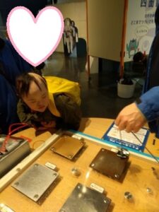 テーブルの上に並んだ金属の板やボルトに手を伸ばし、重さや手ざわりをじっくり確かめる姿が見られました(*^-^*)✨