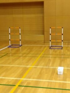 ラダーにひもの付いたボールを引っ掛ける競技です!!