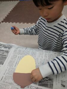 みんなそれぞれ、顔を書きかわいいどんぐりが完成しました(*^-^*)