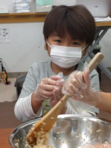 ごはんを混ぜたり、ラップを使って上手に握ってくれました👏