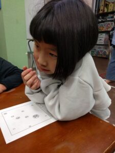 数字を順番に〇を付けるプリントをお配りしています。